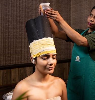 Kizhi Heated herbal poultices pressed over stiff areas to help release tension and heaviness.